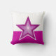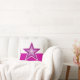 Modern design med en "strålande" rosa och vit stjärna på vit och rosa bakgrund. Dekorativ kudde med ett anpassade som du kan anpassa med din egen text, bilder och dina idéer. Det här är en digitalbild som skapas med originalfotografier och digitalteknik och som trycks på tyg, som inte skiner eller innehåller riktiga miniatyrbilder.