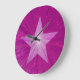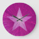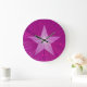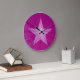 Modern design med en "strålande" rosa och vit stjärna på en "glödande" bakgrund. Väggklocka med rosa och vitt anpassade som du kan anpassa med egen text, bilder och egna idéer. Observera att detta är en tryckt bild som skapats med originalfotografier och digitalteknik, som inte skiner eller innehåller riktiga miniatyrbilder.