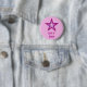 Modern design med en "strålande" rosa och vit stjärna på blekens rosa bakgrund. Knappbricka med anpassadets utformning så att du kan anpassa dig till din egen text, bilder och dina idéer. Observera att detta är en tryckt bild som skapats med originalfotografier och digitalteknik, som inte skiner eller innehåller riktiga miniatyrbilder.