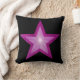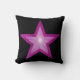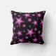 Modern design med en "strålande" rosa och vita stjärnor på en svart bakgrund. Dekorativ kudde med ett anpassade som du kan anpassa med din egen text, bilder och dina idéer. Det här är en digitalbild som skapas med originalfotografier och digitalteknik och som trycks på tyg, som inte skiner eller innehåller riktiga miniatyrbilder.
