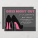 Stiliga inbjudningar med en chic vektorgrafik av ett par svarta klackar med rosa accenter på en mörkgrå bakgrund. Perfekt för möhippor, brudfester, 21-årsfester, cocktailfester, flicknätter och mer! Besök vår butik för matchande produkter.
