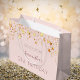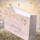 En presentpåse för en 21:a (eller någon annan ålder) födelsedagsfest. En chic med låg och färgad för rosa. Dekorerad med faux guld-droppstjärnor. Anpassa och lägg till ett datum, namn och 21 år. Namn är skrivet med ett modernt handskript i stil.
