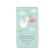 En stork ger en rosa flicka-bunt av glädje mot bakgrund av blå himmel och fluffa moln på dessa returetiketter som matchar våra inbjudningar till barnduschning. MATCHING-objekt i vår butik.