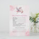 Låt gästerna hjärtligt känna önskemål och deras bästa förutsägelser med detta vackert designade rådgivningskort för baby, dekorerat med flytande rosa moln och en stork som transporterar flicka. Det här kortet är en omhuldad keepy för de blivande föräldrarna och ger en söt och sentimental beröring till din babydusch firande.