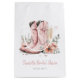 Vår presentpåse med stövlar & bubbly innehåller rosa cowboy-stövlar, klingande champagneglas och blomsterdekorationer - perfekt för rustika, boho, västerländska eller lantliga bröllopsfester. Helt anpassningsbar för att matcha din feststil!