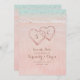Det finns två hjärtan i sanden och i initialer på romantisk rosa och strand med turkos vatten, underbart spara datumkorten för rosa strädbröllop eller målbröllop som rosa sandstränder i Bermuda, Bahamas, Grekland, Barbados etc.