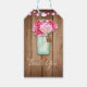Rosa strängljus & Murarvasflaskor Rustik trä Presentetikett
