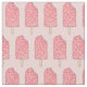 Fabric har en rad med glasspopsikler av "jordgubbsgårta", tryckta på ljus rosa bakgrund. Skapat från en originalmarkörillustration.
