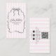 Ett sött parisiskt doodelband stil på rosa och vitt streck, affärskort för smyckesdesigner. Vit och söt! Med QR-kod och social-media.