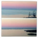 Rosa Sunset över Vatten och Broken Pier Photo Kakelplatta