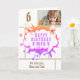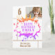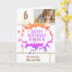 Rosa superhjälte seriepratbubbla flicka fotobursdagskort. Lägg till ditt foto och anpassa namnet, texten och meddelandet inuti. Roligt tecknat födelsedagskort.