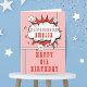 Rosa Superhjälte Tecknad Tal Bubble Girl Birthday Card. Lägg till ditt namn, din ålder och ditt meddelande i. Roligt födelsedagskort för en superhjälteflicka.