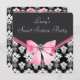 Rosa svart damask Rosa söt 16-fest Inbjudningar