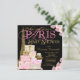Rosa Svart och Guld Paris Blond Flicka Baby Shower Inbjudningar