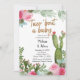 Inbjudan PinkTaco Bout Baby till babyvisningsprogrammet med cactus. Perfekt till babyduschen party.