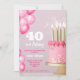 Rosa tårtballonger modern 40-årsdag inbjudningar