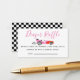 Biltemat babydusch i roligt biljett är en dagare raffel med vattenfärg som illustrerar en rosa vintage bil med röda lågor. Kortet uppmanar gästerna att ta med sig en blöjförpackning för att få en chans att vinna ett speciellt pris.