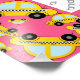 Modern och trendig söt tecknad rosa taxi bil mönster med gult och svart och vit checkers rand bakgrund för en unik gåva. De bästa taxi-presentidéerna för manar och pojkar och flickor.