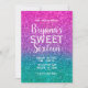 Rosa Teal Aqua & Lila Glittrande Glitter Sweet 16 Inbjudningar