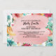 Elegantens botaniska rosa, teal och gultens blommigt och rosa vattenfärg på det vita flicka första födelsedagsfest inbjudan.