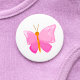 Lägg till en skiss av personlighet med den här söta rosa tecknad-knapp. Perfekt för ryggsäckar, jacka, hattar eller party favors ger den här fina designen roligt och viskhet åt alla tillbehör. Lätt och lätt att fästa, det är ett underbart val, för barn, fjäril älskare, eller någon som har en lekfull, smart grafik.