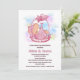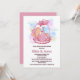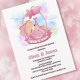 Inbjudan dina vänner och nära vänner till din babydusch med den här babyduschinbjudan med en söt nalle som sover i en rosa sling medan de flyter i himlar med ballonger.