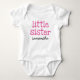 Rosa text liten syster T-tröjor, långärmad T-tröjor, kroppsdräkter, organiska kroppsdräkter, tutukostymer, sömnlösa klänningar, skjortor och klänningar, hattar, pullovaskromater, sweatshirts, sleeve T-tröjor och andra kläder, för barn, spädbarn och småbarn som är liten syster! Du kan enkelt anpassa dessa små T-shirts, kroppsdräkter och andra kläder genom att lägga till en namn under den rosa texten.
