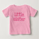 Rosa text liten syster T-tröjor, långärmad T-tröjor, kroppsdräkter, organiska kroppsdräkter, tutukostymer, sömnlösa klänningar, skjortor och klänningar, hattar, pullovaskromater, sweatshirts, sleeve T-tröjor och andra kläder, för barn, spädbarn och småbarn som är liten syster! Du kan enkelt anpassa dessa små T-shirts, kroppsdräkter och andra kläder genom att lägga till en namn under den rosa texten.