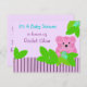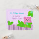 En söt tigerunge i mjuk rosa med mörkare rosa randaccent ger denna bebis shower inbjudan en personlig touch. Randigt och djungelväxter på en mjuk mauve bakgrund . Anpassa med all din egen information som önskat.
