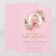 Rosa Tjej Foto Dop Första födelsedag Orkidéer Inbjudningar