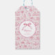 Rosa Toile Coquette Bow 1:a födelsedagsflicka Presentetikett