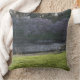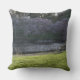 Fin parkvy dekorativ kudde med lugnande kruka. FRONT på 20 x 20 tum Dekorativ kudde är en söt närbild av Springtime träd i bloom med rosa blommor över den vackra dammen, med en relaxande sätesbänk av trä i förgrunden. Pillow är en solid grönt som skugger med texten Holmdel Park, New jersey, där fotografiet togs. Originalfotocopyright © 2013 TamiraZDesigns.