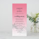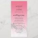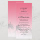 Elegantens målbröllopsmeny med en tropisk handflatan träd-design på en ljus rosa bakgrund med elegant och modern typografi. Rosan i solnedgången tonas ut mot en vit bakgrund. Lägg bara till dina uppgifter om bröllop till den här snyggten på bröllopsmenyn för tropisk strand. Enbart designad för dig av Lycklig Dolphin studio.