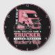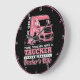 Den här väggklockan firar modigt styrkan hos en lastbil-förares fru. Mot en svart bakgrund med en vibrerande rosa-fälg har den ett modernt rosa halvsida-lastbil. Texten "DEN ENDA SAK TOUGHER ÄN EN TRUCKER ÄR EN TRUCKER'S WIFE" visas på ett framträdande sätt i en blandning av vitt och rosa typsnitt, skapar det en kraftfull och snyggt hyllning till de motståndskraftiga partnerna för chaufförer från lastbil.