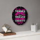 Denna väggklocka är ett kraftfullt hyllande till styrkan hos en lastbil-förares fru. Mot en svart bakgrund med en levande rosa fälg, har den två rosa halvskugga av lastbilar som är placerad i en speglad utformning, med ett hårt rosa rand mellan dem. Den djärva texten "DEN ENDA SAK TOUGHER ÄN EN TRUCKER ÄR EN TRUCKER'S WIFE" visas tydligt på vit och rosa, skapar ett tydligt och uppriktigt påstående om hennes återhämtningsförmåga.