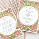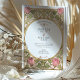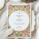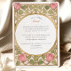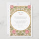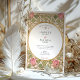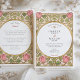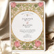 Deklarera kärlek med den här unika romantiska bröllopsinbjudan, inspirerad av de fantastiska konsten och hantverkarna och Art nouveau rörelser. Denna konstnärliga utformning visar ett symmetriskt gräns av stiliserade rosa-tulpaner och vismisk, hjärtformad löv i en mjuk grönt. Hela illustrationen definieras av elegant, flödande linearbete i ett antikt guld hue, som skapar en sofistikerad och tidlös känsla. Ett fantastiskt ovalt ram är perfektens mittpunkt för dina bröllop-detaljer, som visas i ett klassiskt serif-teckensnitt. Den här inbjudan är perfekt för ett konstnärligt par som planerar en vintage, romantisk eller trädgårdsmässig bröllop med en liten historisk charm.