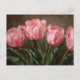 Elegant rosa- tuliper med grönt löv inställt på en varm grått- bakgrund. Denna vackra botaniska oljemålning skulle vara ett utmärkt komplement till en postkortssamling, som används för skräppost eller andra hantverksprojekt.