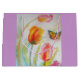 Färgglad Tulpan och Fjäril Akvarell Presentpåse. En strålande presentpåse som passar till alla presenter. Designad utifrån mina originalakvarellmålningar, som jag målade i min egen blomsterträdgård.