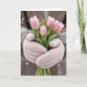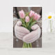 Rosa tulpaner med snöflingor på födelsedagen kort