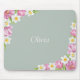 Denna eleganta blommiga musmatta har mjuka rosa tulpaner och vita narcisser arrangerade i en klassisk trädgårdshörnadesign. Mot en mjuk grön bakgrund och personlig med ditt namn, ger den raffinerad botanisk charm till ditt skrivbord.