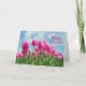 Rosa kort för tulpananpassadehälsning till något att sägaglad påsk.