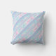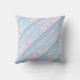 En söt och feminin kastkudde med ett mönster av diagonala rosa, turkosa och vita deckchair-ränder och rosa rosor: en del av Posh & Painterly 'Sommar dagar' kollektionen.