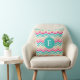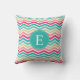 Rosa Turkvoise Chevron Monogram Kudde