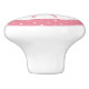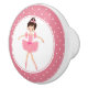 Den här söta knoppen har en liten brunette ballerina med en rosa tutu bunden med en båge. Bilden placeras på en vit bakgrund och ramas in med en cirkelformad rosa och vit polka punkt gräns. Söt för varje liten flicka som drömmer om att vara ballerina.