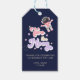 Den här blankettstaggen för födelsedagspresent innehåller text-, rosa- och lila-färg- och utrymmesillustrationer. Bilderna är planeter, stjärnor och en raketfrakt. Baksidan är rymdgalaxen, skapar det här perfekten för att tacka gästerna för att de kom för att fira din lilla astronaut.