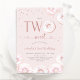 rosa inbjuder två söta andra födelsedag. Utformning av trendig med vattenfärgad rosa och vita blodkroppar. Innehåller typsnitt för hjärtskript och typografi två. Du kan välja utskrivna inbjudningar och/eller en digital mall för omedelbar nedladdning. Perfekt för en snyggt feminina flickor andra dagen firande.