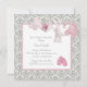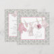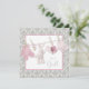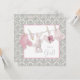 Bedårande rosa strumpor, napp, strumpor och kanin på en tvättlina rosa och grå damask baby shower inbjudan. Du kan enkelt anpassa denna söta rosa och grå baby shower inbjudan för ditt evenemang genom att lägga till dina evenemangsuppgifter, typsnitt, teckenstorlek och färg samt formulering.