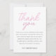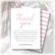 Den här eleganten och contemporaryn är ett tack för att du fått ett kort som är designat för en babydusch. På framsidan visas rosans text mot en skarp vit bakgrund, medan baksidan har en delikat pastellpräglad rosa och vit rand mönster. Det här kortet fungerar som perfektens arbetsyta med sin renaste och moderna utformning och ger dig möjlighet att uttrycka din tacksamhet på ett tänkvärt och snyggt sätt.
