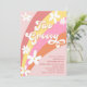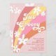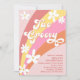 Rosa Two Groovy Retro Daisys Regnbåge Birthday Inbjudningar