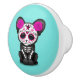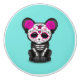 Detta förtjusande särdrag som en liten svart panterunge dekorerade med mönster för day of the deadsockerskallen. En singelro visas på katterna head med fem pekar stjärnasitta i mittet av det är pannan. Det mycket små djur dekoreras med virvlar runt och pricker mönster i traditionen av day of the deadsockerdöskallar. Denna unika svart panterdesign är ett förtjusande långt som firar day of the dead.
